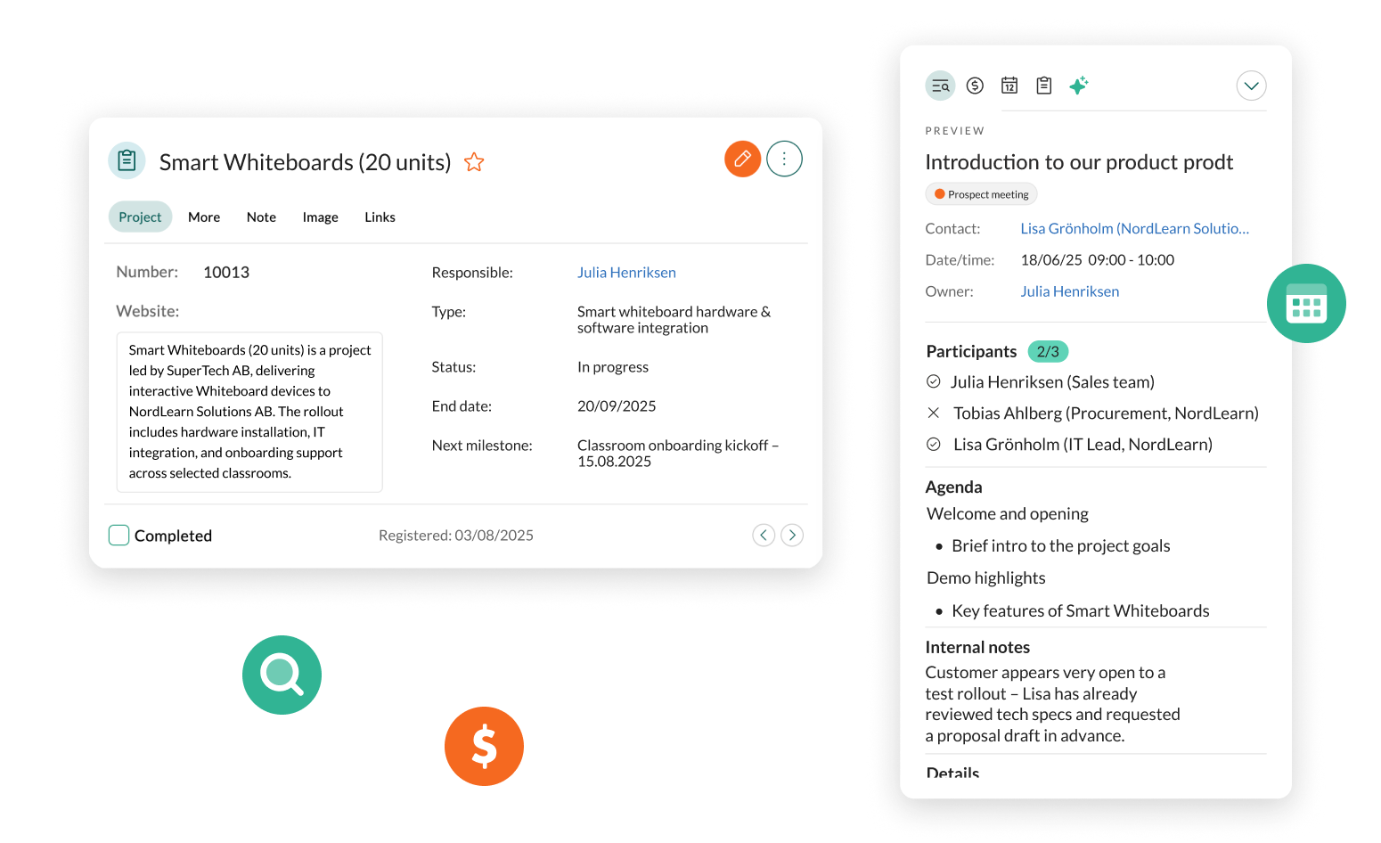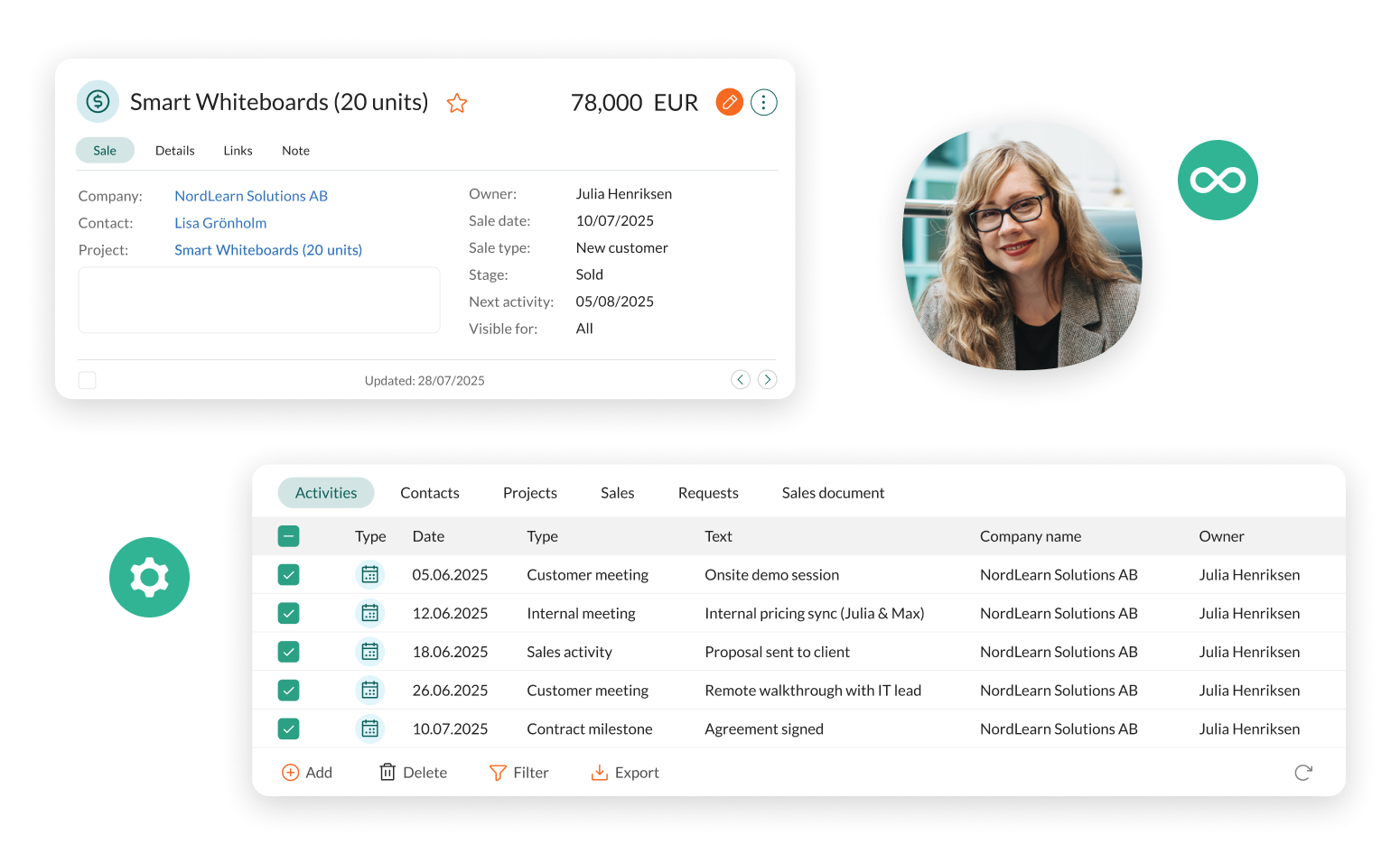 - Erstellen Sie Verträge und Vereinbarungen direkt im CRM mit digitaler Signatur
