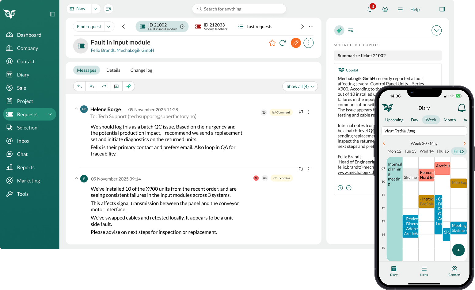 – mit SuperOffice CRM für den Maschinenbau, Fertigungsbetriebe und Produktionsunternehmen. Von der Ticketannahme bis zur Einsatzplanung sorgt unsere Lösung für transparente Abläufe und Serviceerlebnisse, die Ihre Kunden langfristig binden.
