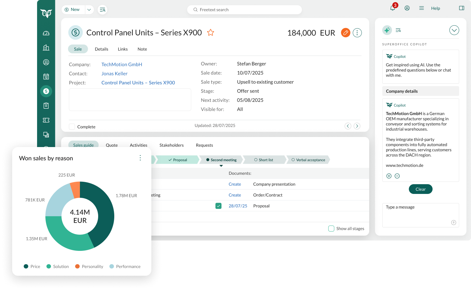 SuperOffice CRM verbindet Kunden-, Maschinen- und Vertragsdaten in einem System. So behalten Sie jederzeit den Überblick über Projekte, Wartungstermine und Verkaufschancen. Das Ergebnis: mehr Transparenz im Vertrieb, zuverlässige Serviceerinnerungen und eine klare Basis für planbare Umsätze im After Sales.