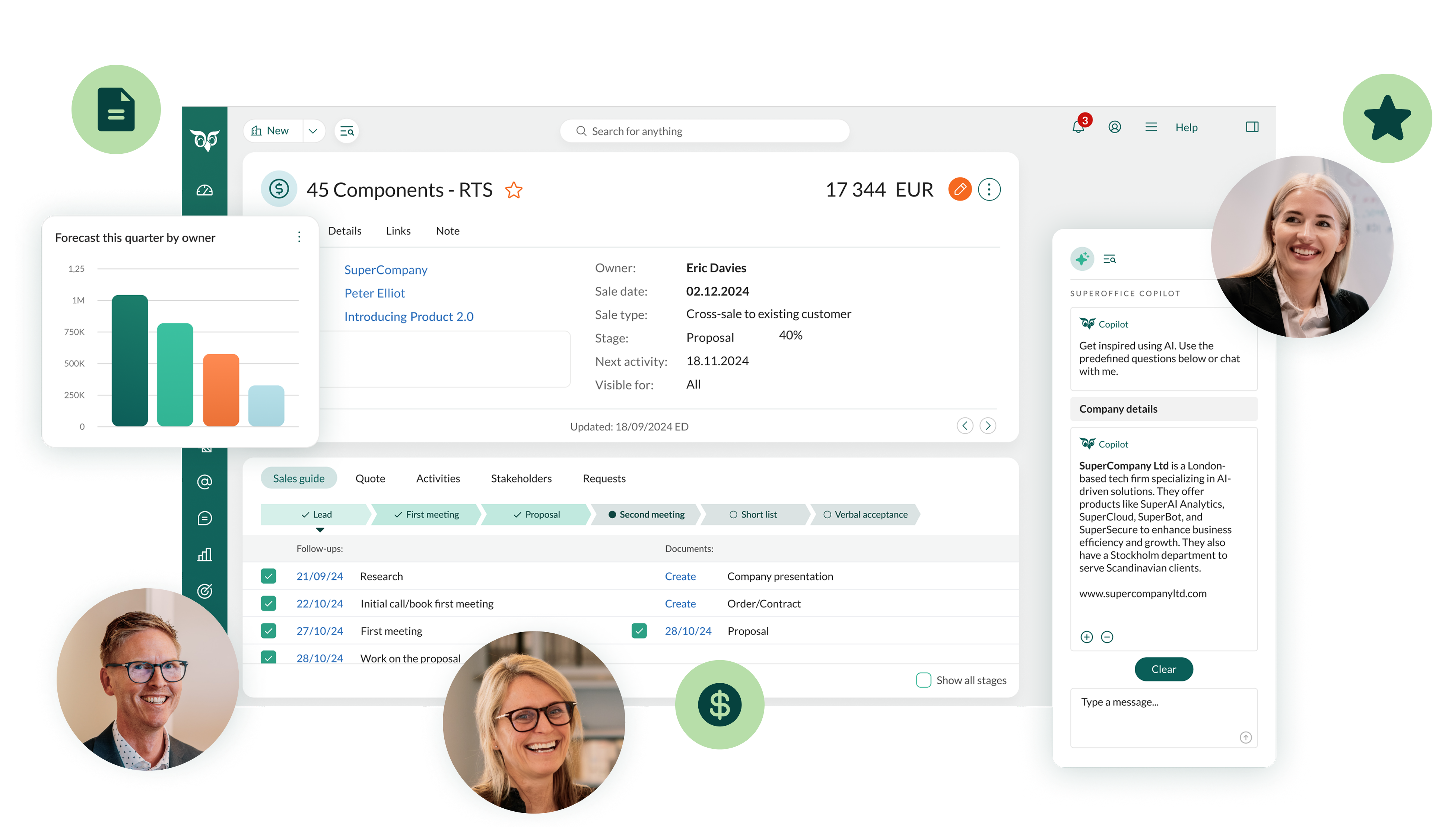Gewinnen Sie qualifizierte Leads, verbessern Sie Ihre Abschlussquoten und schaffen Sie Transparenz in jeder Phase Ihres Verkaufsprozesses. Mit der Vertriebsmanagement-Software von SuperOffice setzen Sie auf ein System, das Kundenbeziehungsmanagement und langfristiges Wachstum in einem Tool vereint.