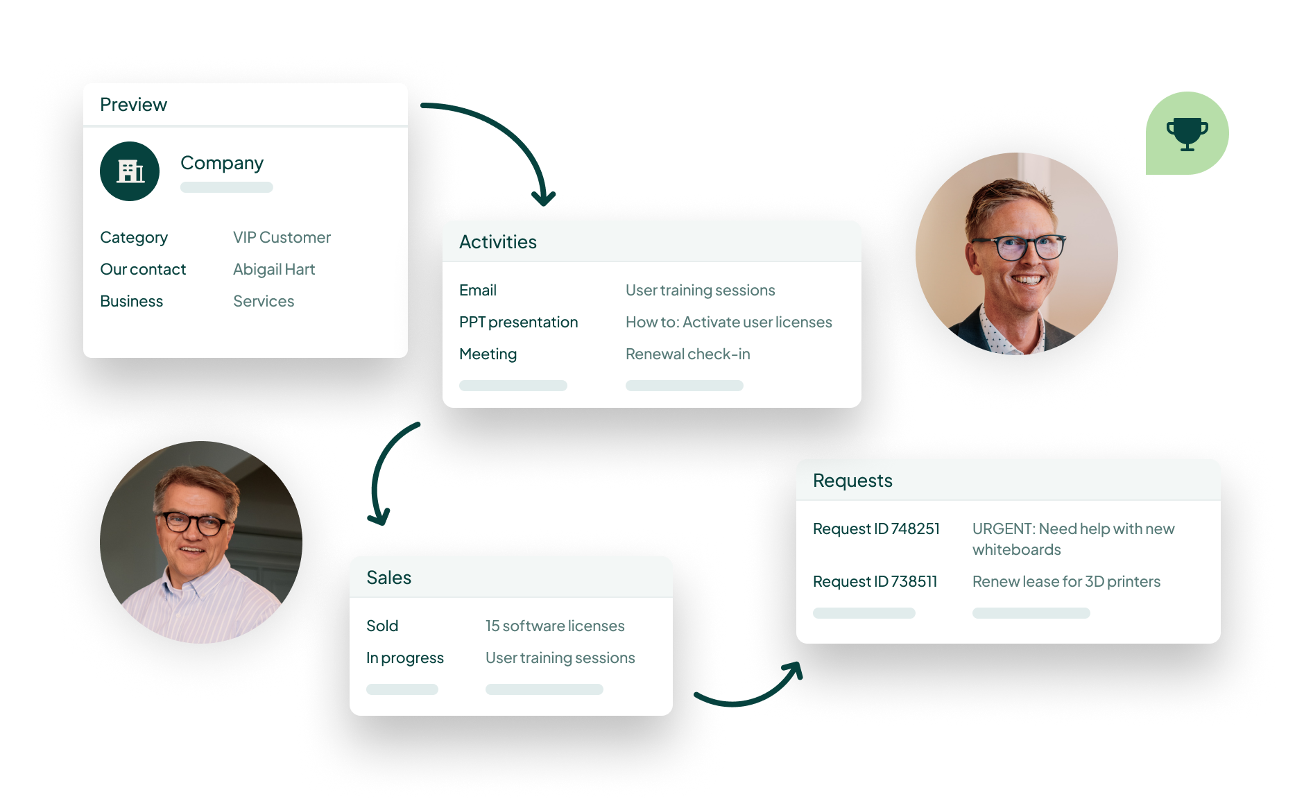 ERP- ja CRM-tietojen yhdistäminen auttaa markkinointia ja myyntiä työskentelemään yhteisen päämäärän eteen, parantaa tiedonkulkua, poistaa päällekkäistä työtä ja tehostaa tiimien välistä yhteistyötä.