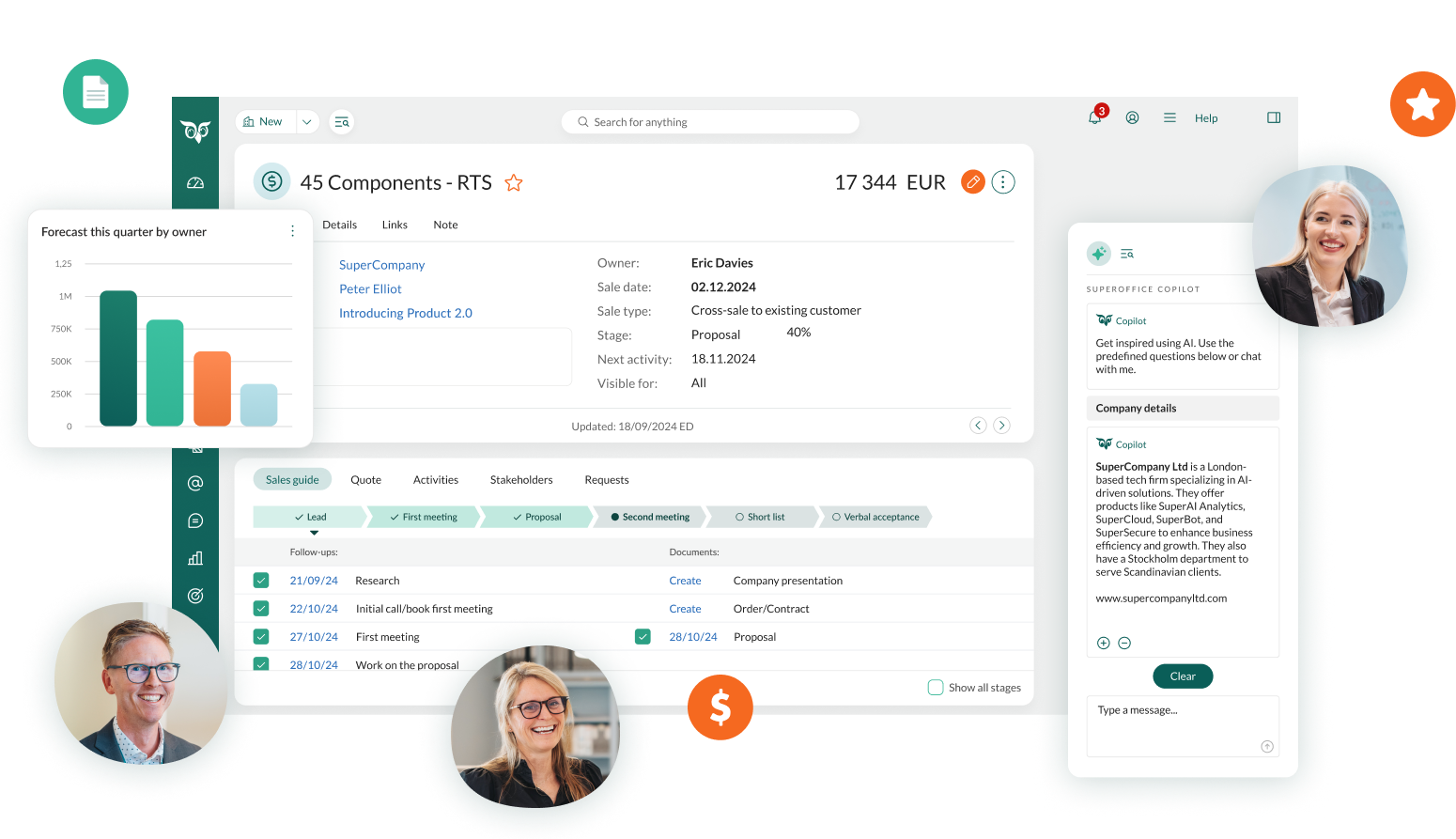 Nutzen Sie smarte Erinnerungen und Checklisten in Ihrer Pipeline. SuperOffice unterstützt Sie dabei, Etappen zu verfolgen und nächste Schritte zuverlässig zu planen.